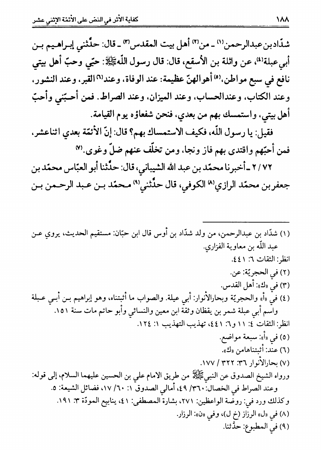 كفاية الأثر، في النصوص على الأئمة الإثني عشر