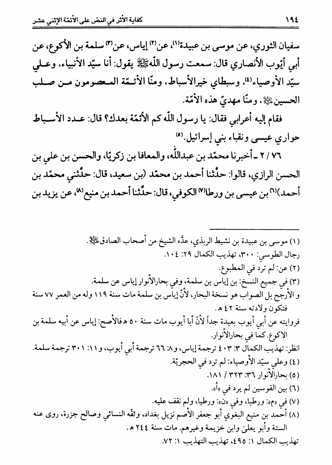 كفاية الأثر، في النصوص على الأئمة الإثني عشر