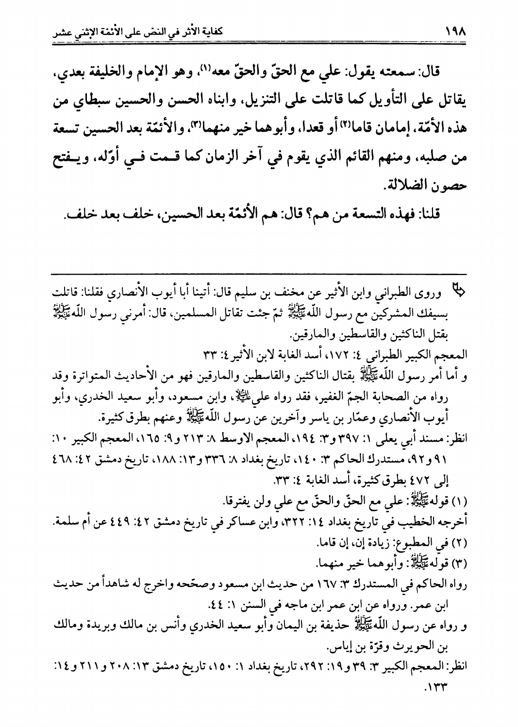 كفاية الأثر، في النصوص على الأئمة الإثني عشر