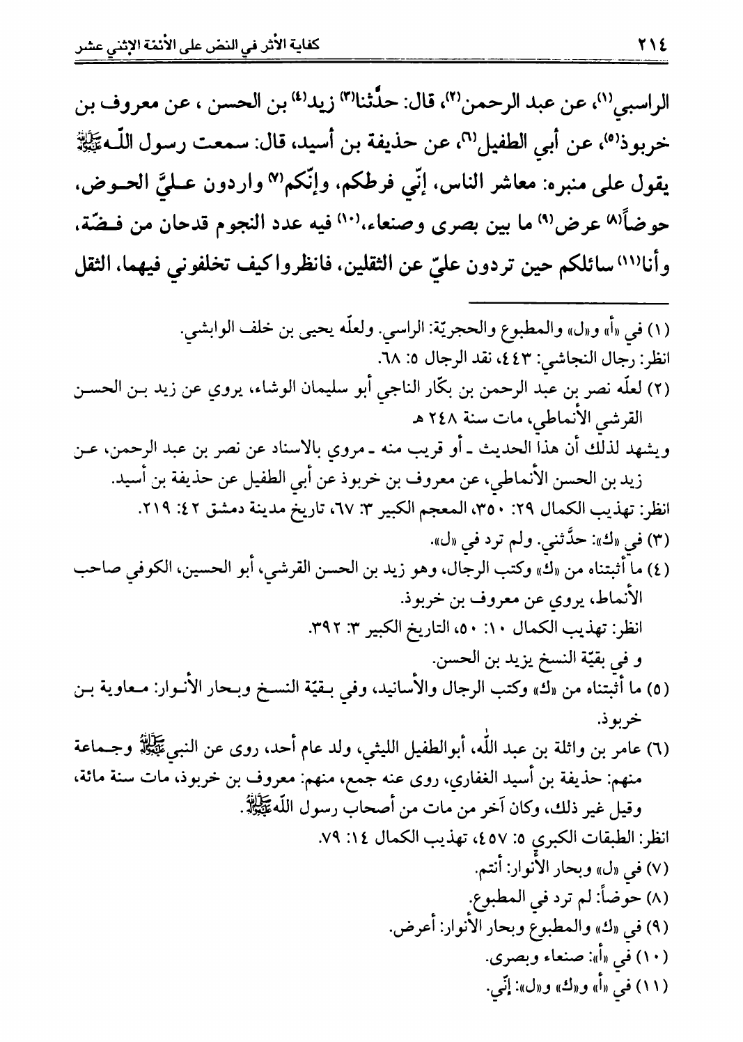 كفاية الأثر، في النصوص على الأئمة الإثني عشر