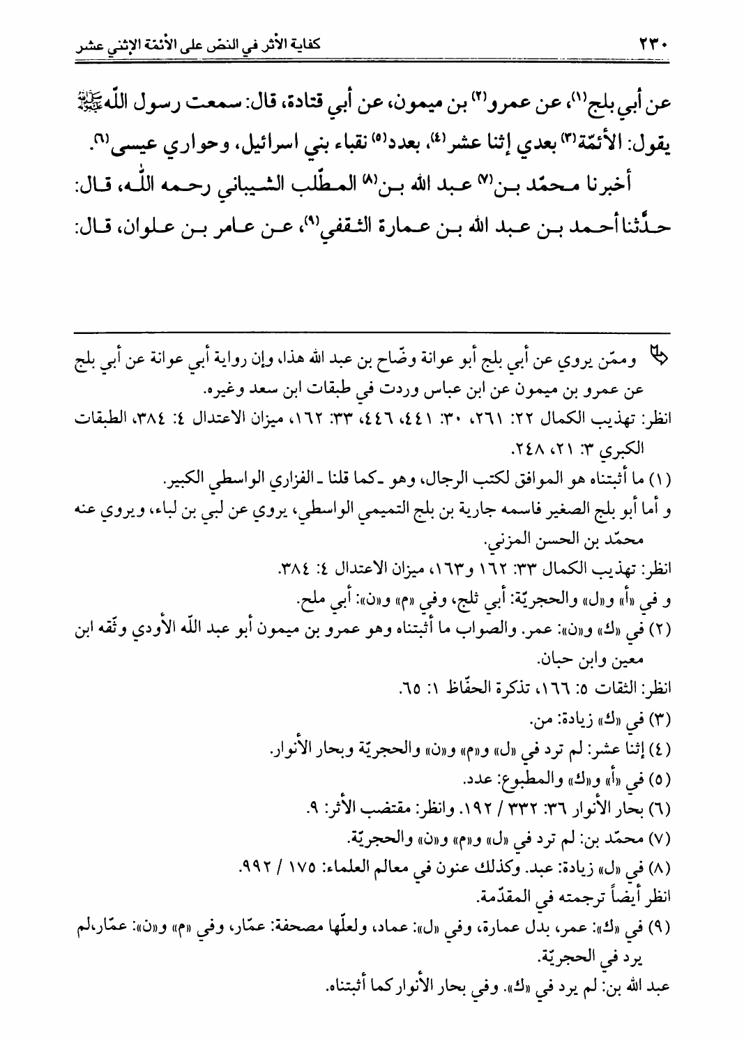 كفاية الأثر، في النصوص على الأئمة الإثني عشر