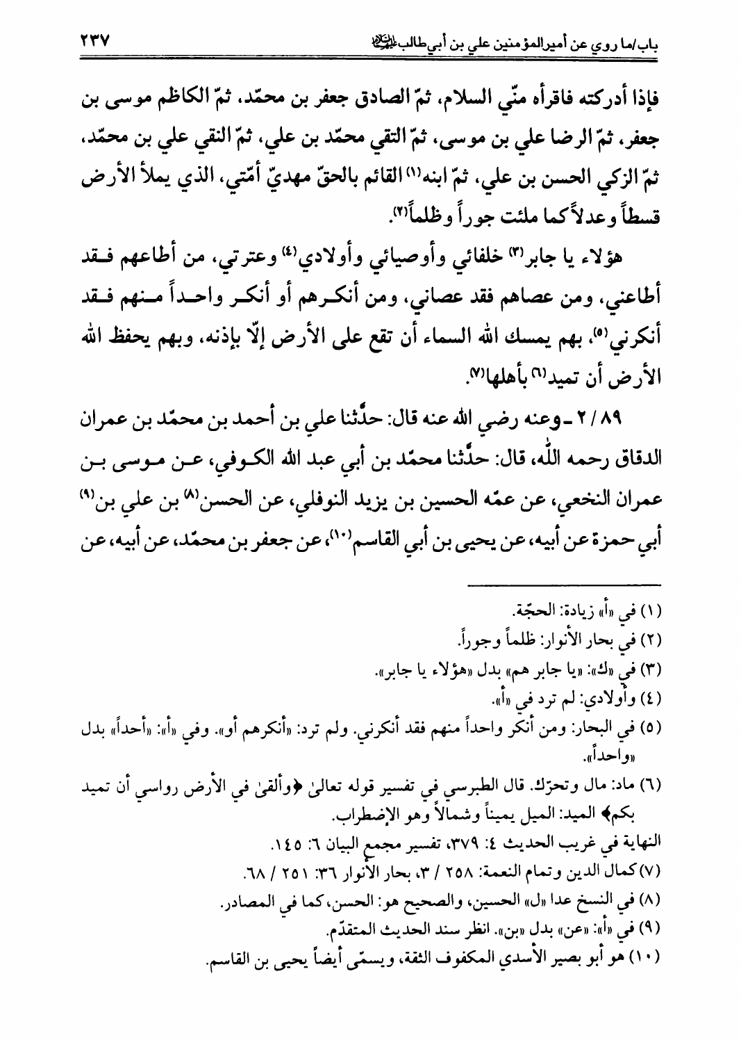 كفاية الأثر، في النصوص على الأئمة الإثني عشر