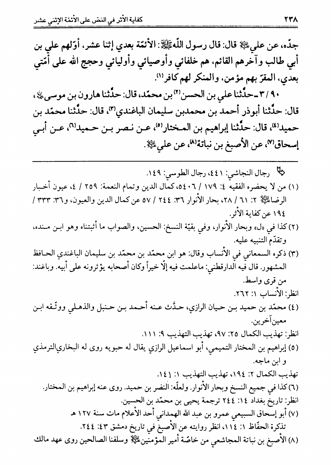كفاية الأثر، في النصوص على الأئمة الإثني عشر