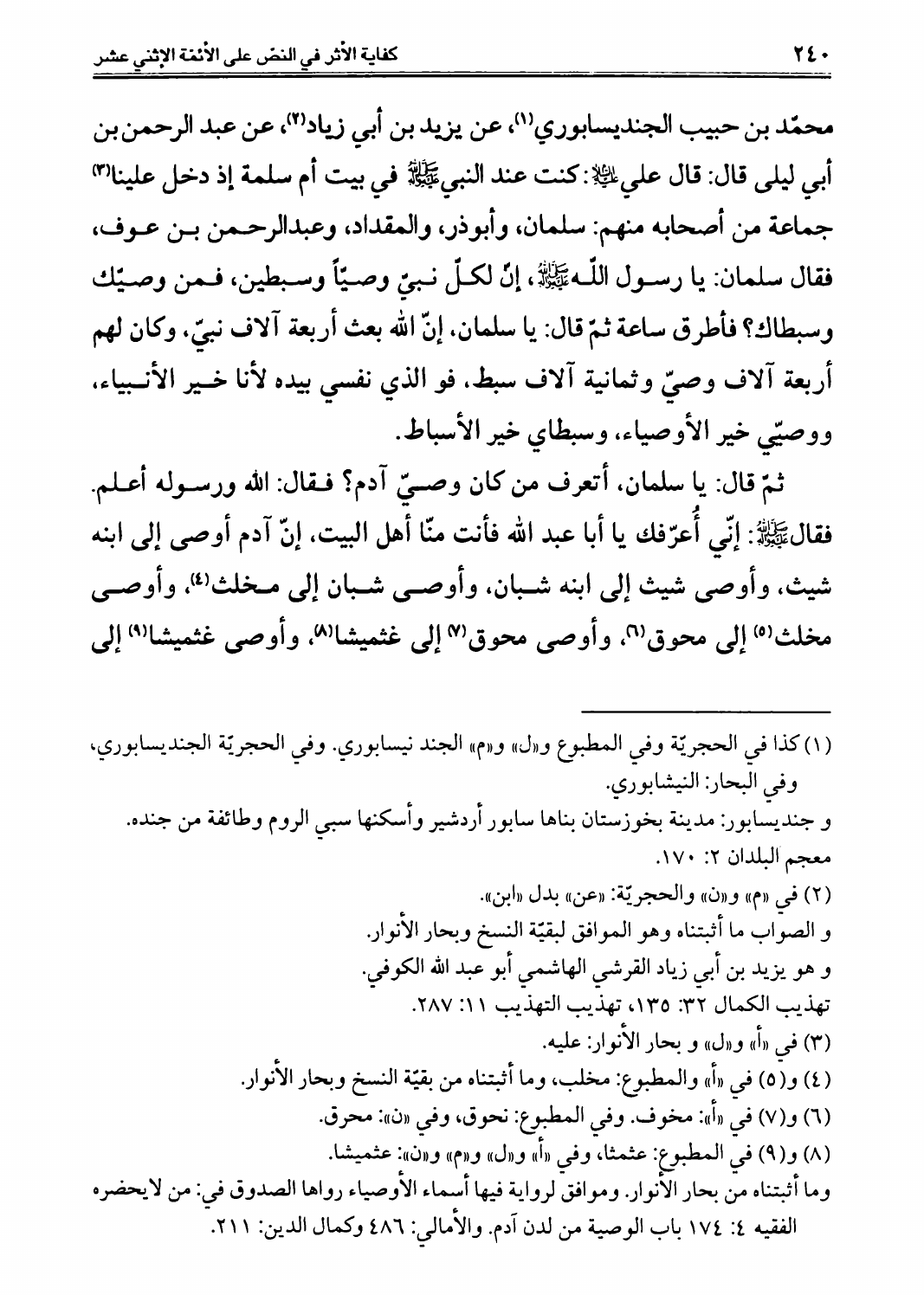 كفاية الأثر، في النصوص على الأئمة الإثني عشر