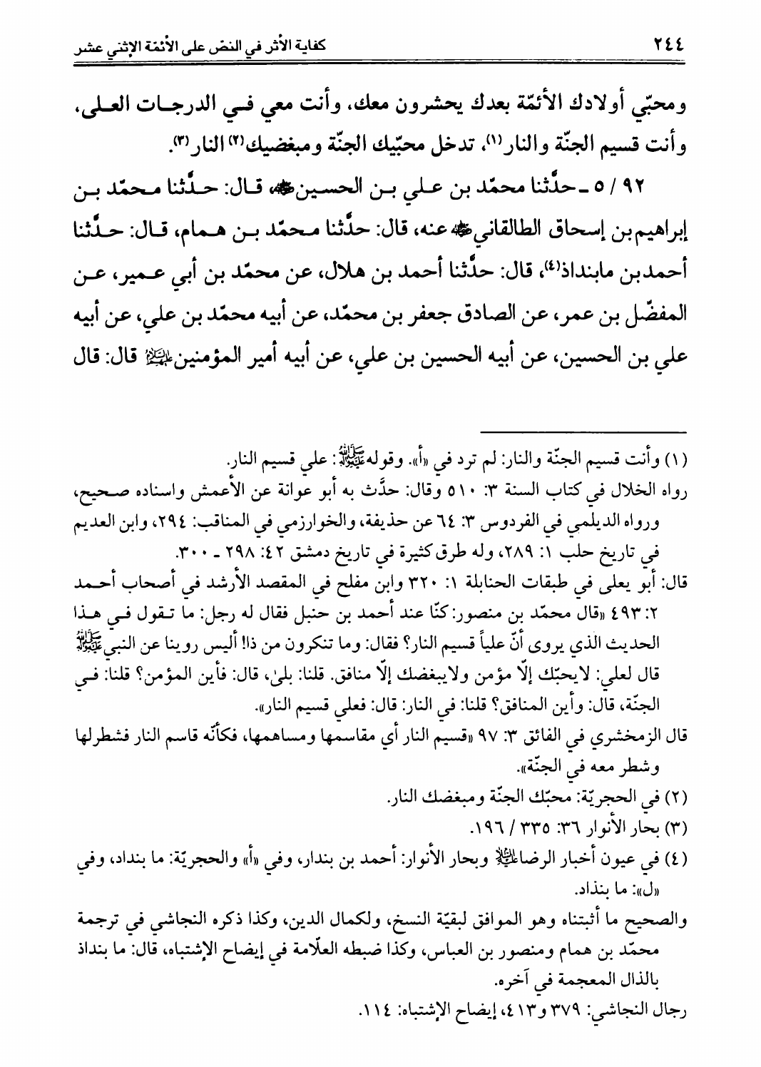 كفاية الأثر، في النصوص على الأئمة الإثني عشر