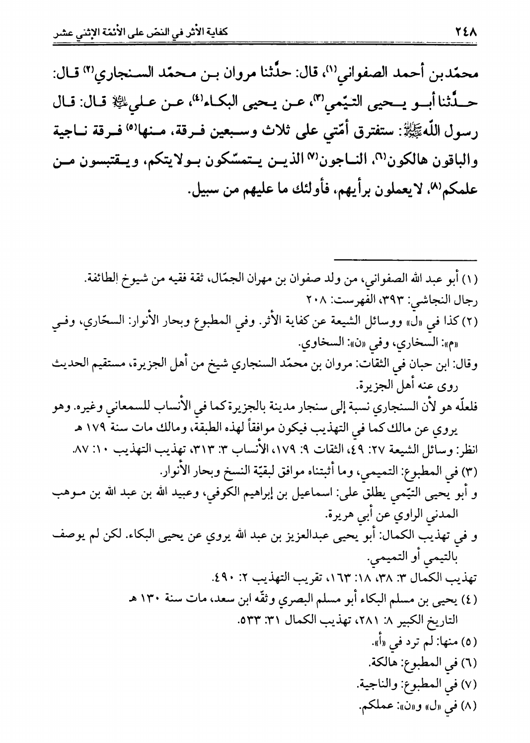 كفاية الأثر، في النصوص على الأئمة الإثني عشر