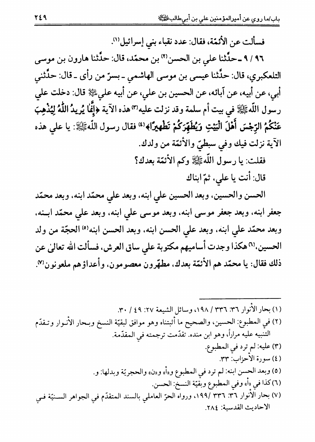 كفاية الأثر، في النصوص على الأئمة الإثني عشر