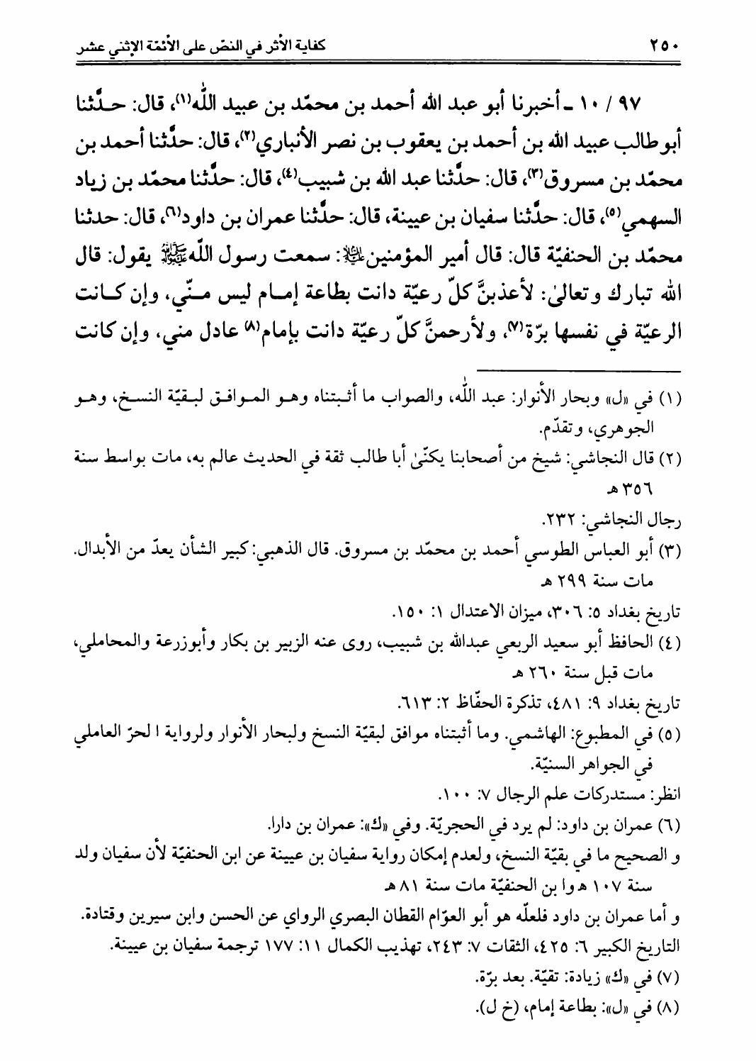 كفاية الأثر، في النصوص على الأئمة الإثني عشر