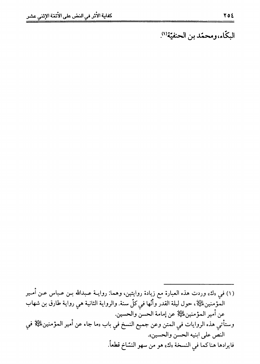 كفاية الأثر، في النصوص على الأئمة الإثني عشر