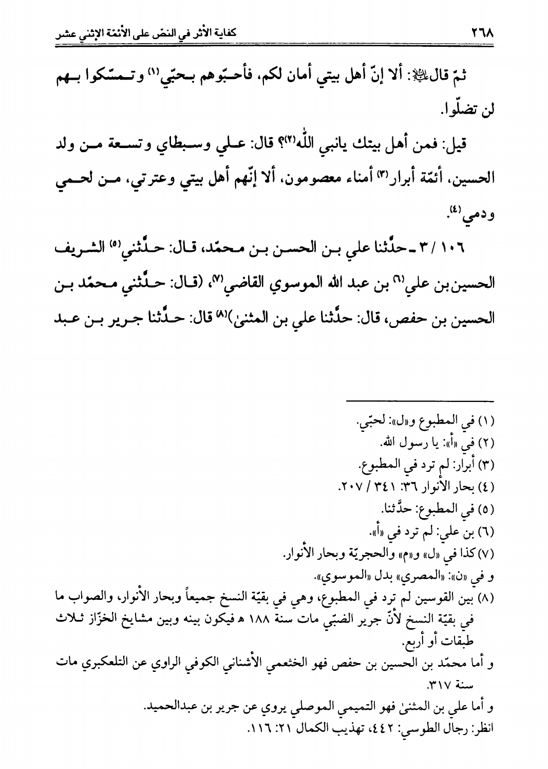 كفاية الأثر، في النصوص على الأئمة الإثني عشر