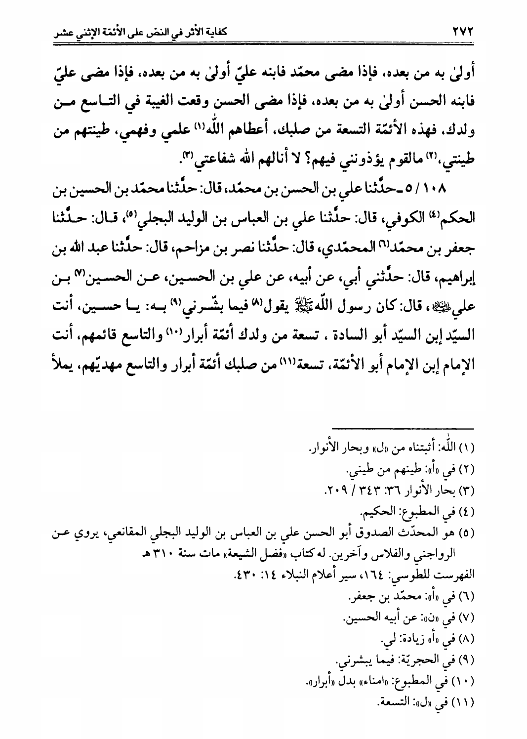 كفاية الأثر، في النصوص على الأئمة الإثني عشر