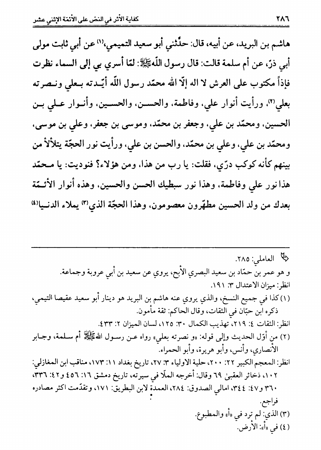 كفاية الأثر، في النصوص على الأئمة الإثني عشر