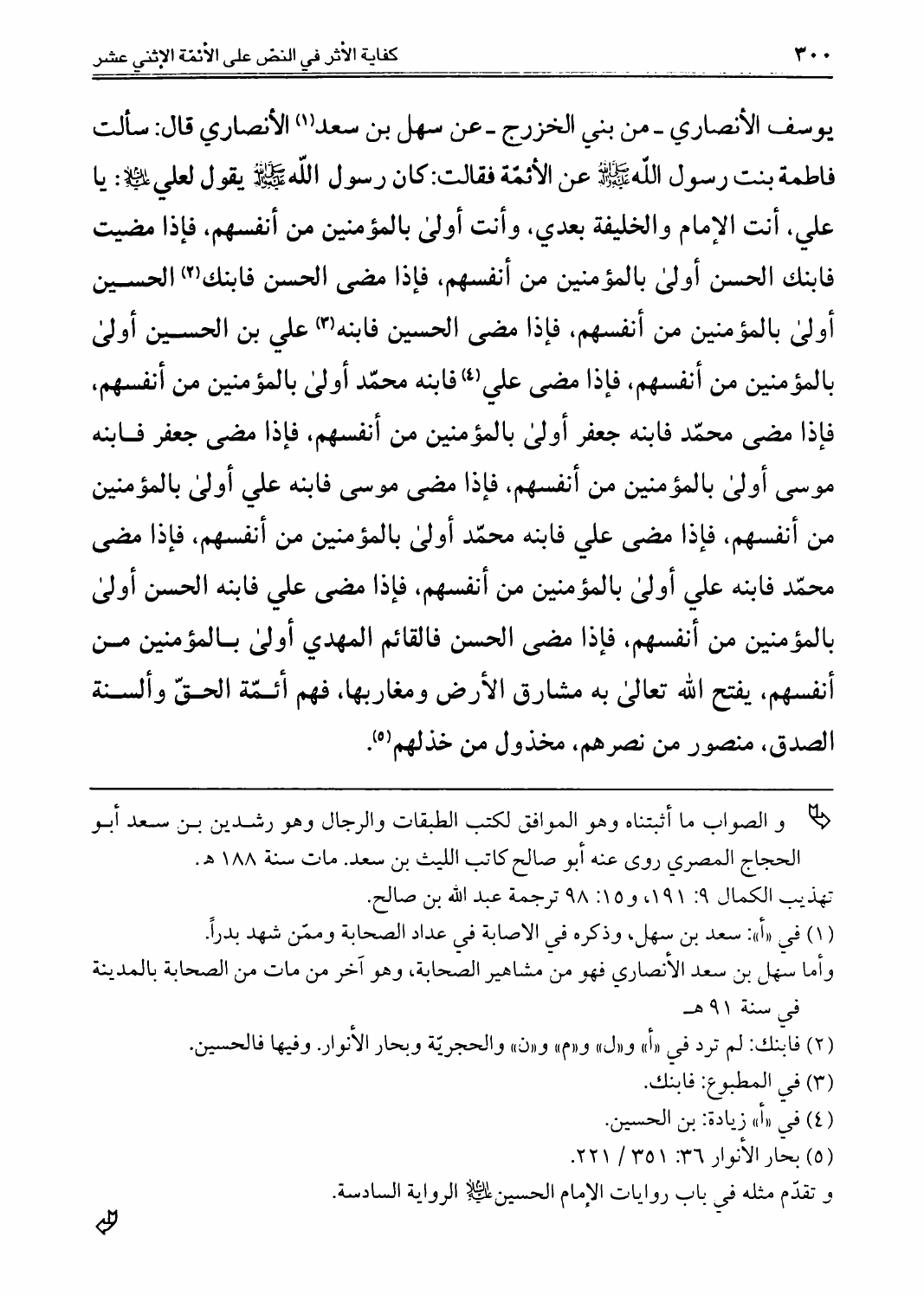 كفاية الأثر، في النصوص على الأئمة الإثني عشر