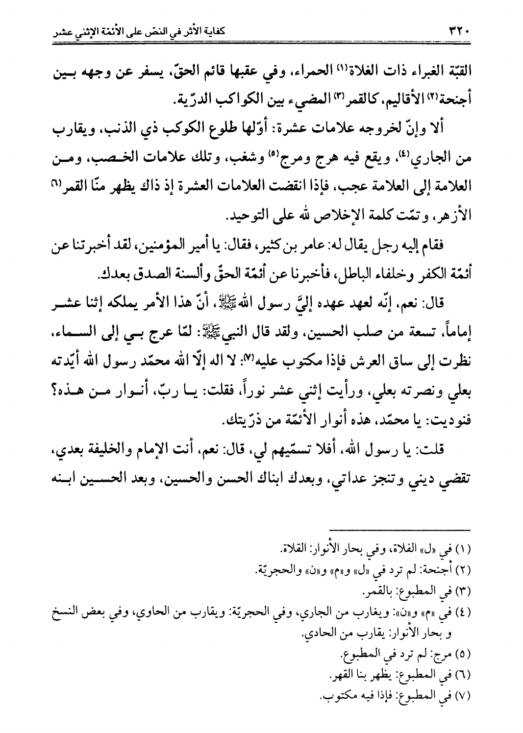 كفاية الأثر، في النصوص على الأئمة الإثني عشر