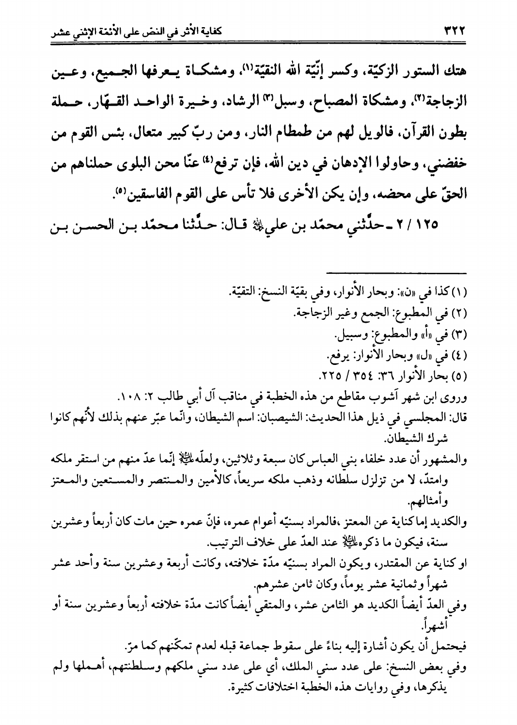 كفاية الأثر، في النصوص على الأئمة الإثني عشر