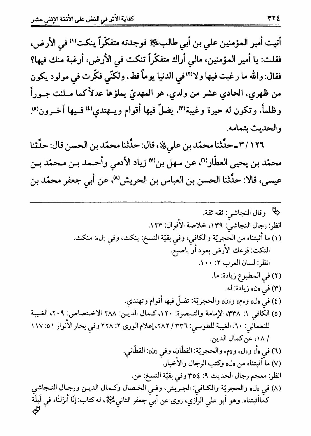 كفاية الأثر، في النصوص على الأئمة الإثني عشر
