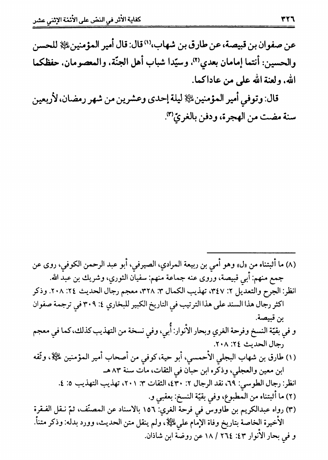 كفاية الأثر، في النصوص على الأئمة الإثني عشر