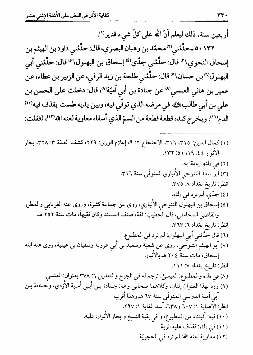 كفاية الأثر، في النصوص على الأئمة الإثني عشر