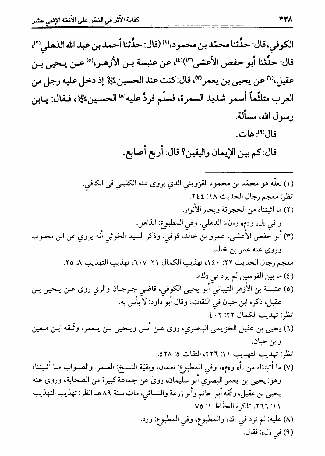 كفاية الأثر، في النصوص على الأئمة الإثني عشر