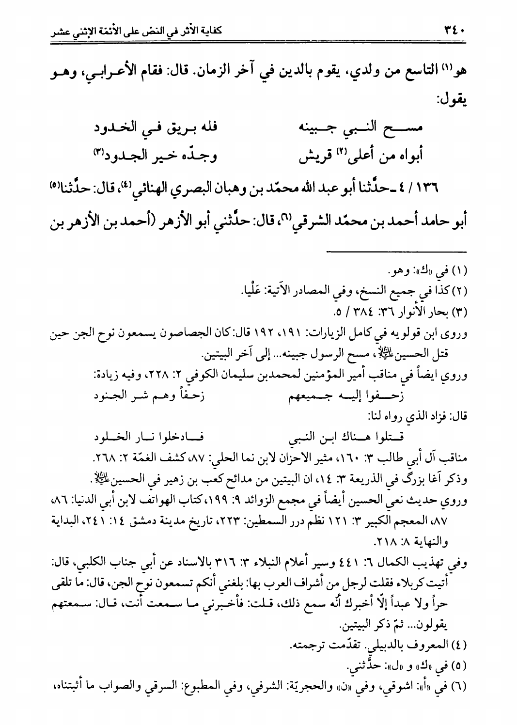 كفاية الأثر، في النصوص على الأئمة الإثني عشر