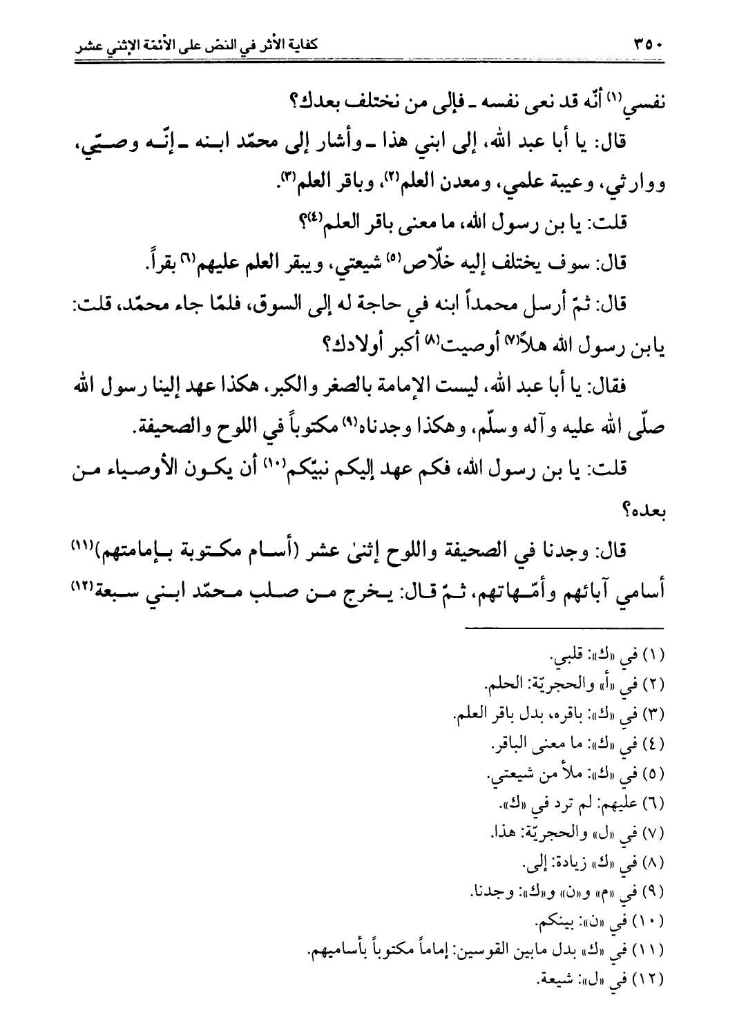 كفاية الأثر، في النصوص على الأئمة الإثني عشر