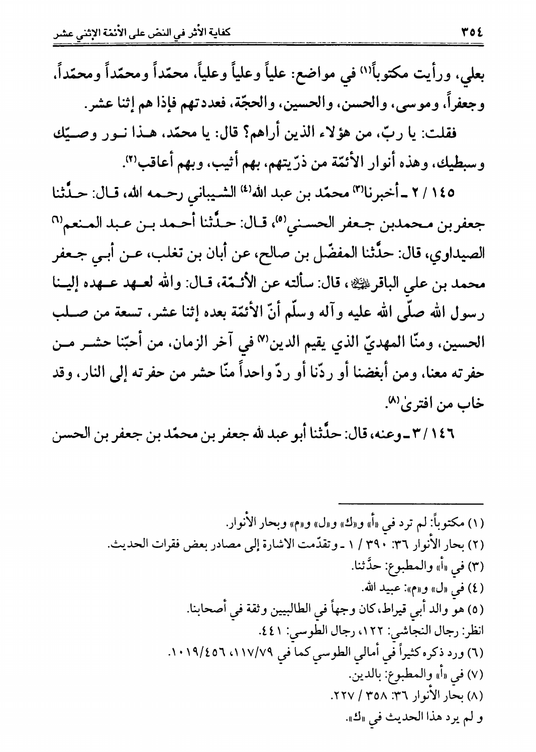 كفاية الأثر، في النصوص على الأئمة الإثني عشر