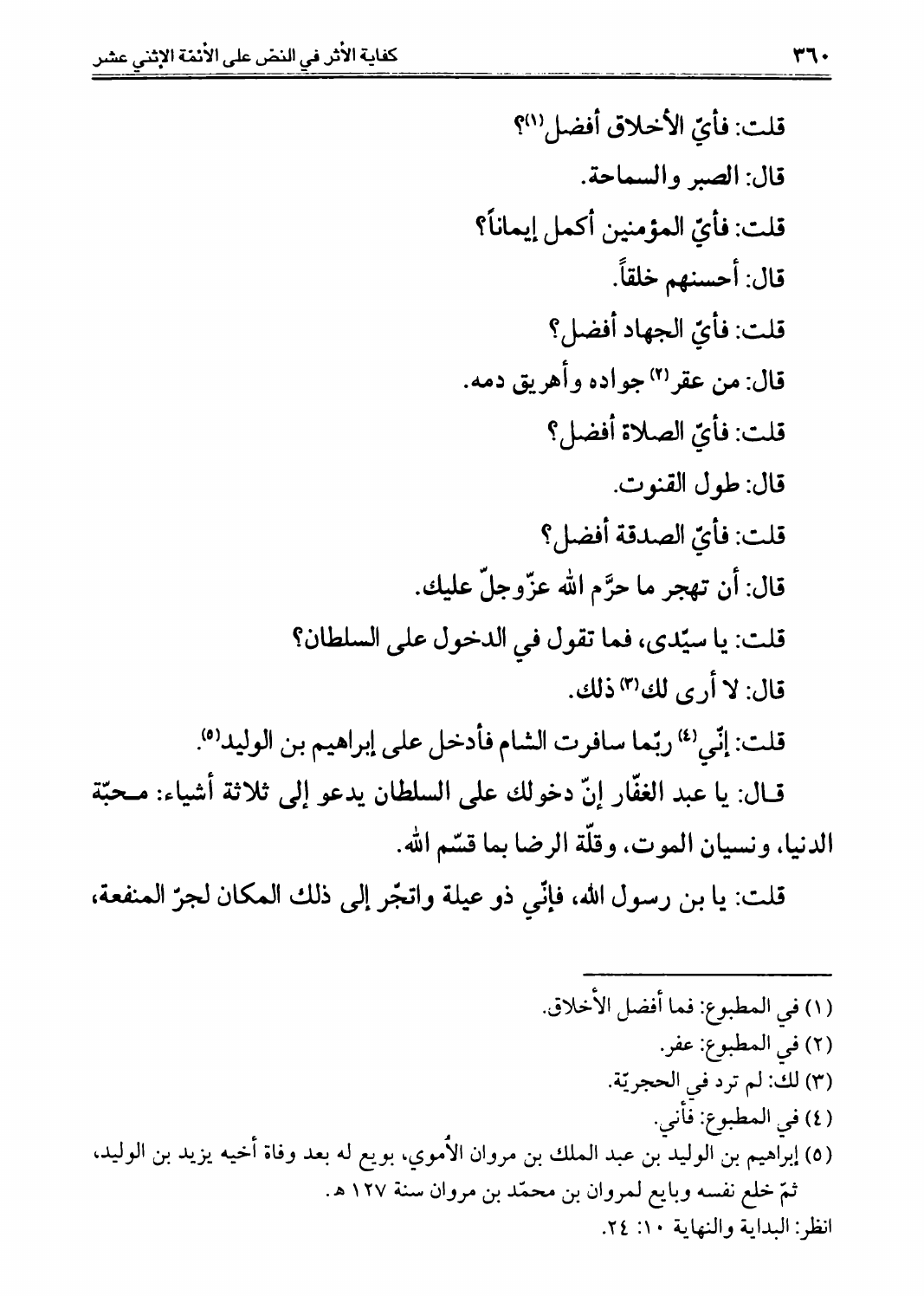 كفاية الأثر، في النصوص على الأئمة الإثني عشر
