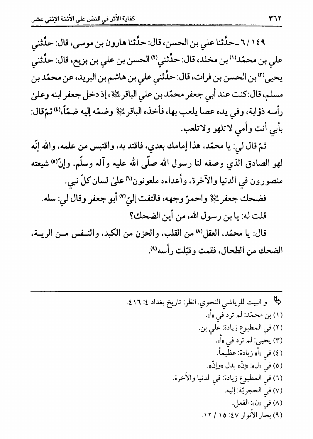 كفاية الأثر، في النصوص على الأئمة الإثني عشر