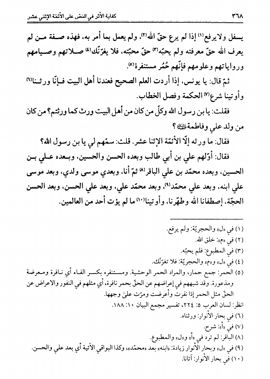 كفاية الأثر، في النصوص على الأئمة الإثني عشر