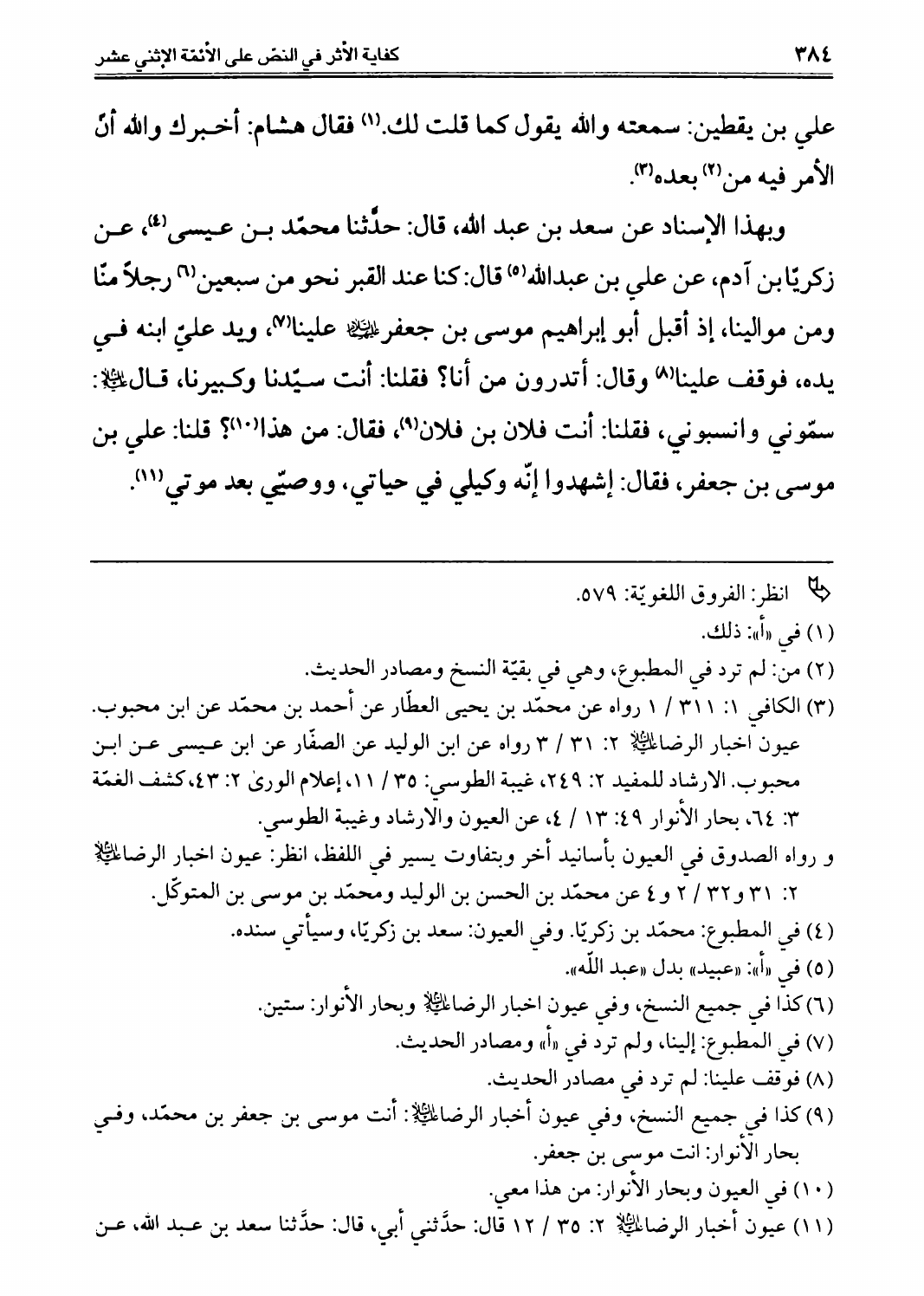 كفاية الأثر، في النصوص على الأئمة الإثني عشر