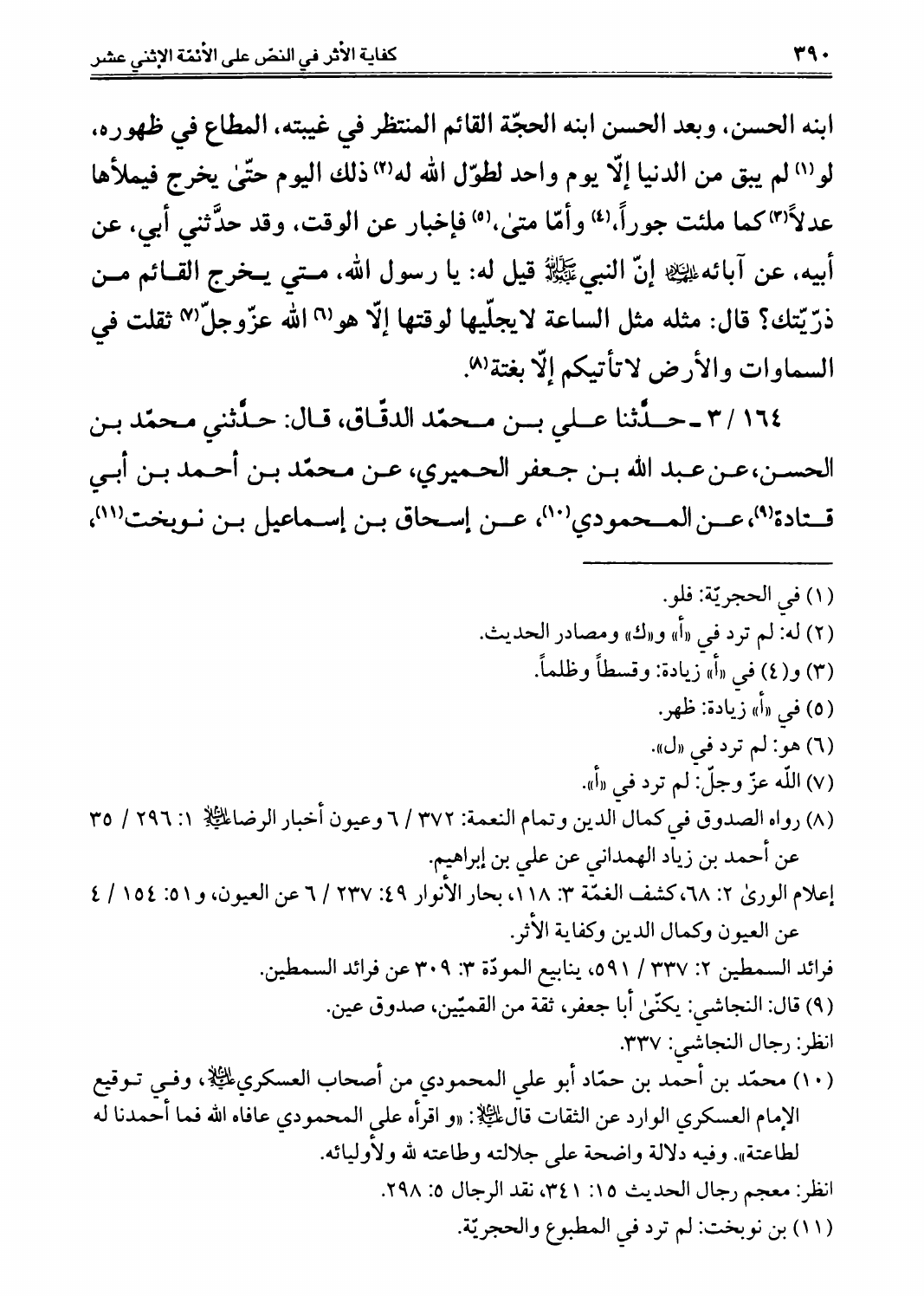 كفاية الأثر، في النصوص على الأئمة الإثني عشر