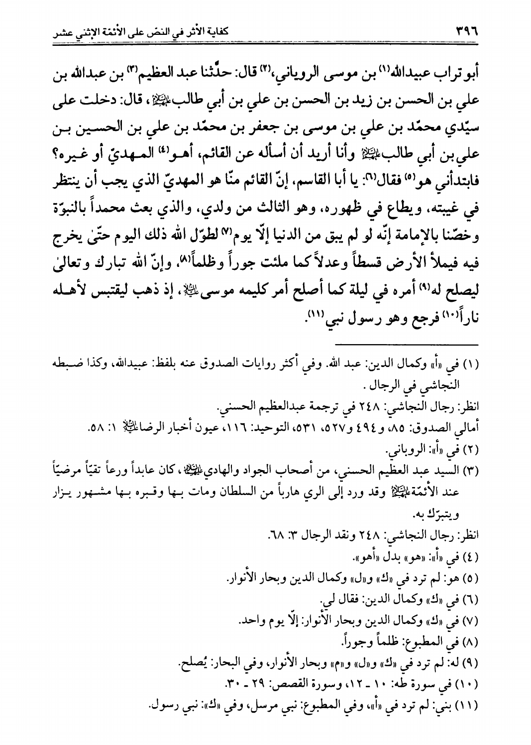 كفاية الأثر، في النصوص على الأئمة الإثني عشر