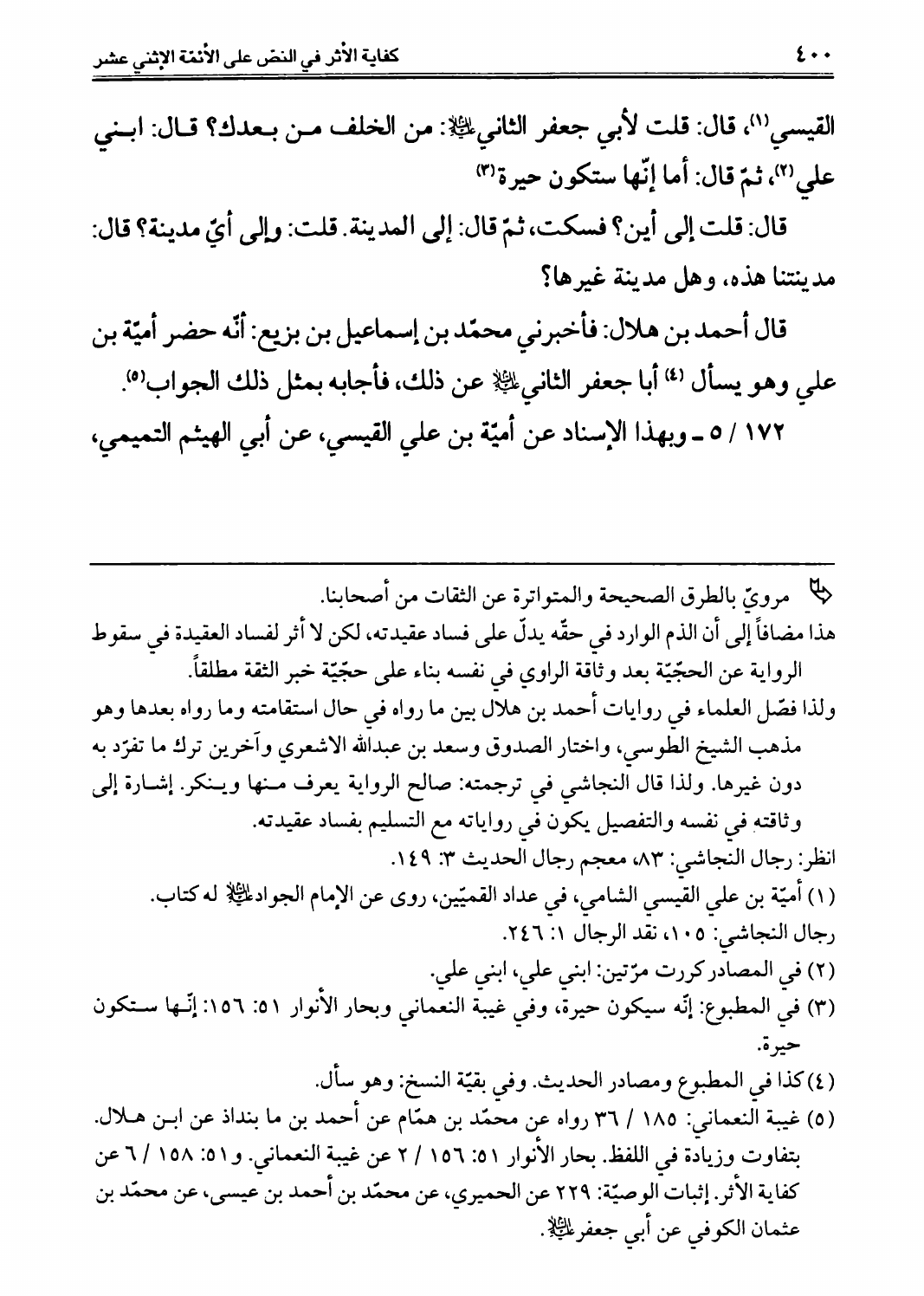كفاية الأثر، في النصوص على الأئمة الإثني عشر