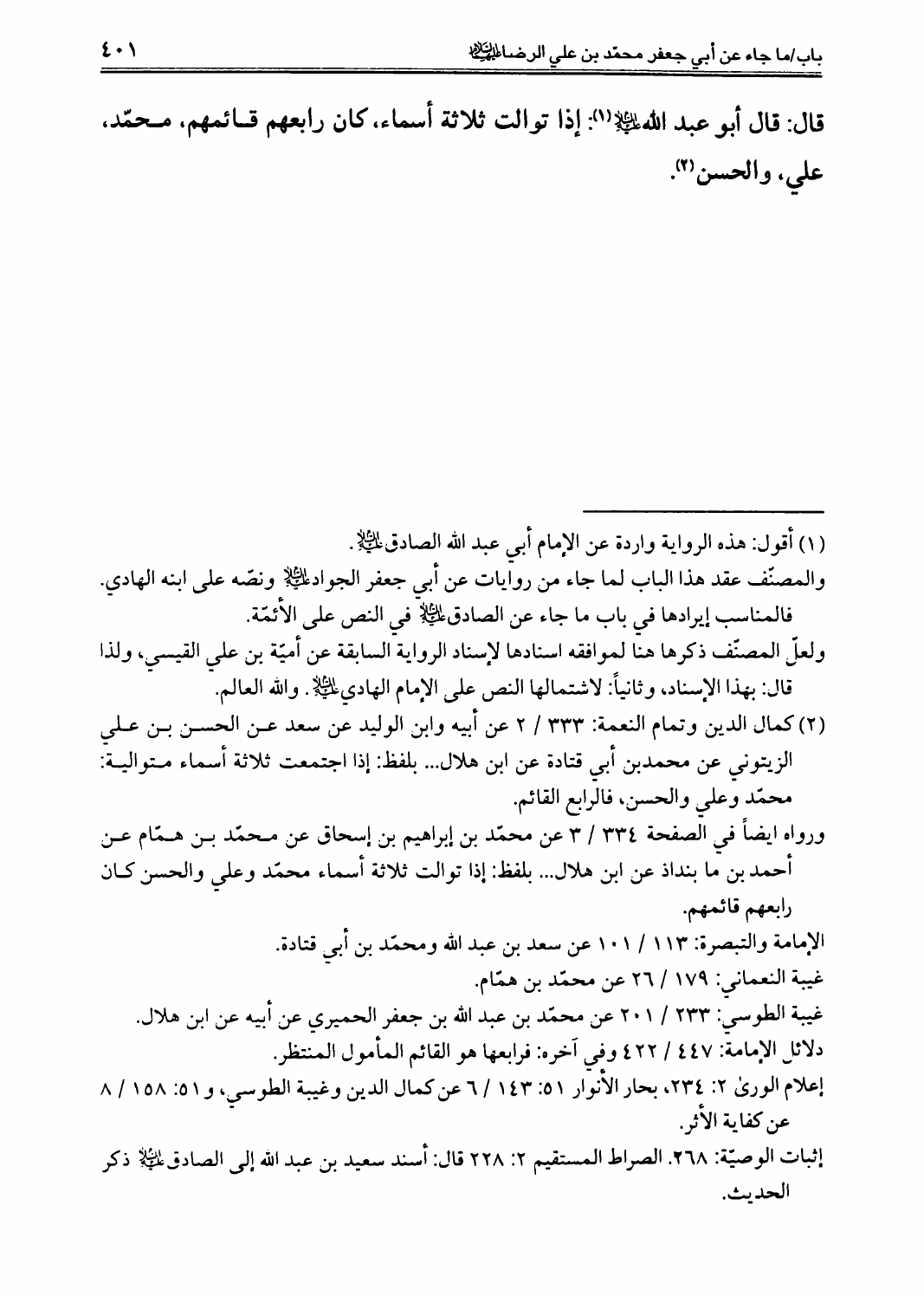 كفاية الأثر، في النصوص على الأئمة الإثني عشر