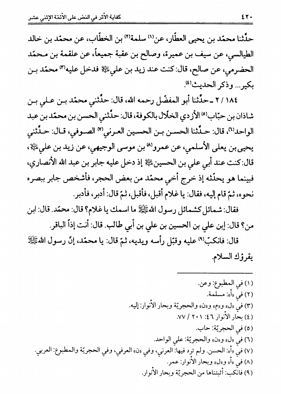 كفاية الأثر، في النصوص على الأئمة الإثني عشر