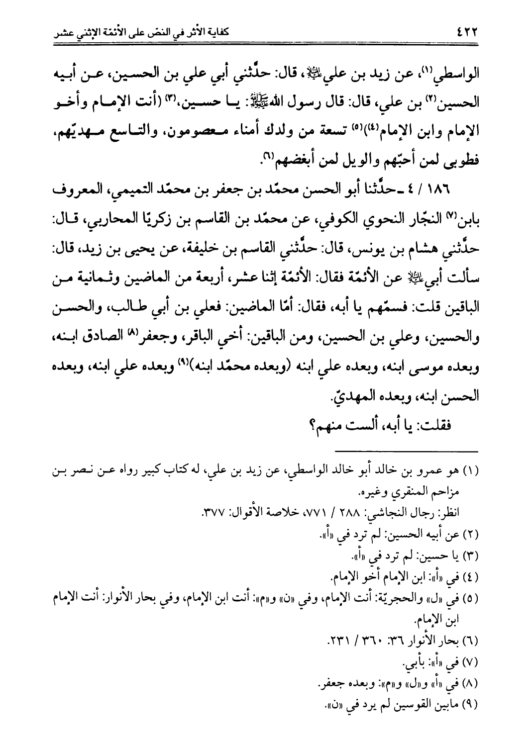 كفاية الأثر، في النصوص على الأئمة الإثني عشر