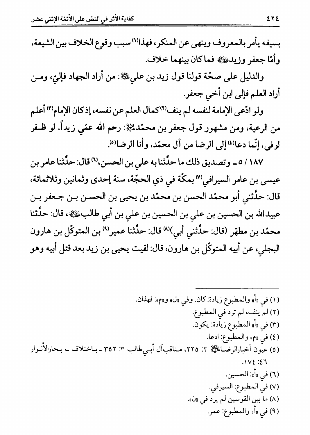 كفاية الأثر، في النصوص على الأئمة الإثني عشر