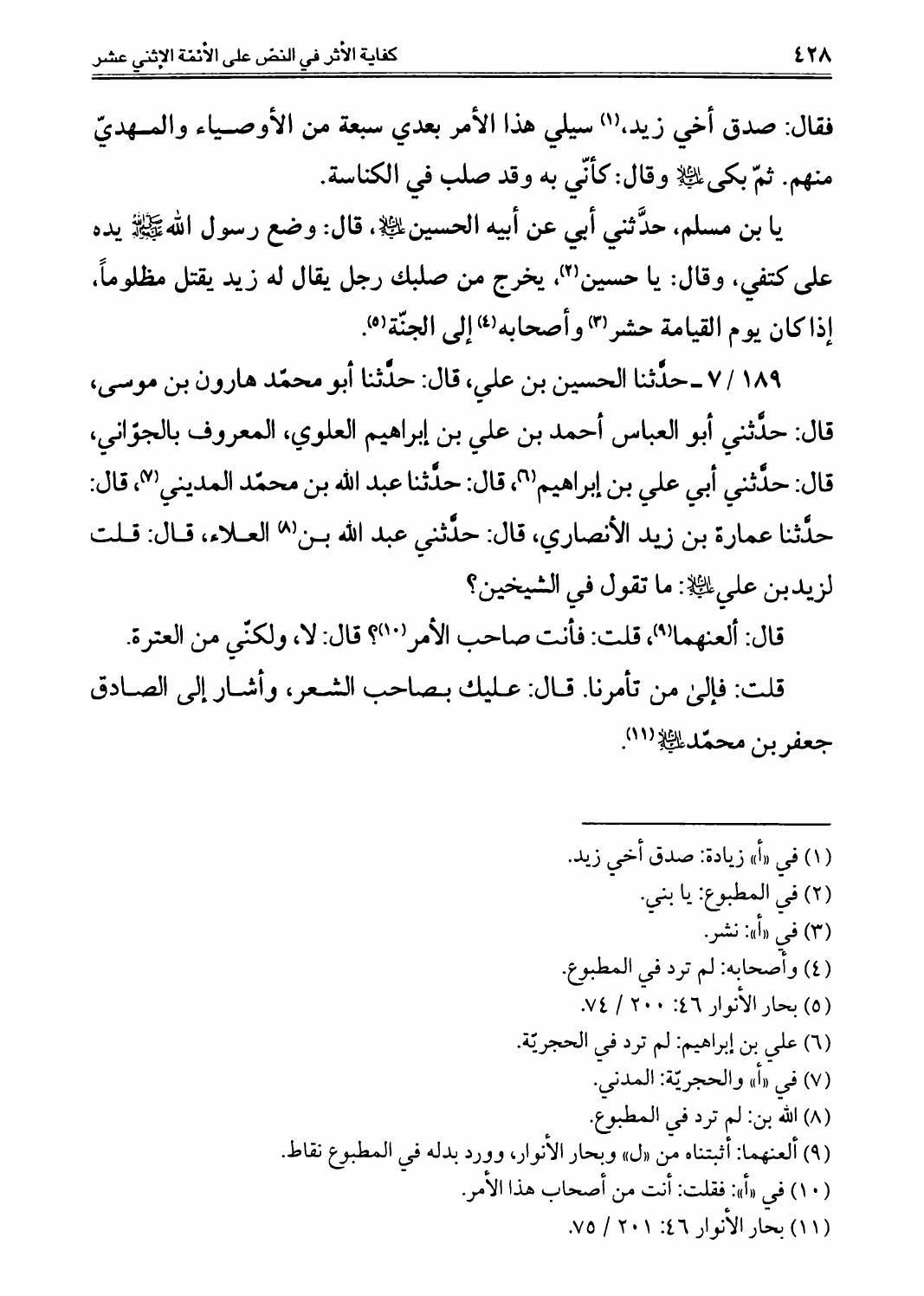 كفاية الأثر، في النصوص على الأئمة الإثني عشر