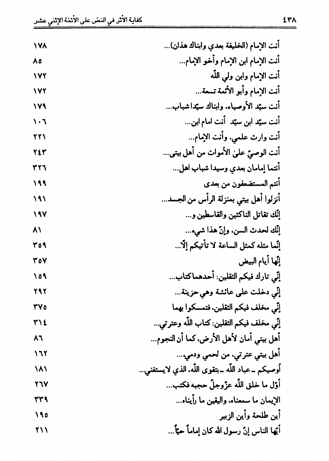 كفاية الأثر، في النصوص على الأئمة الإثني عشر