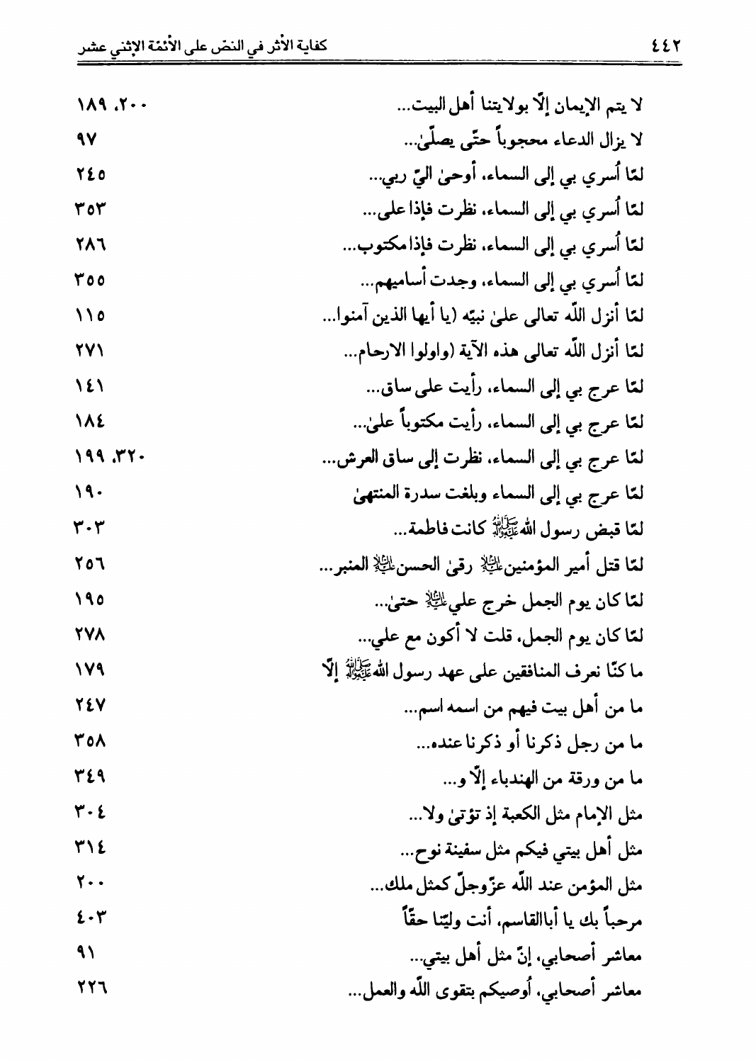 كفاية الأثر، في النصوص على الأئمة الإثني عشر