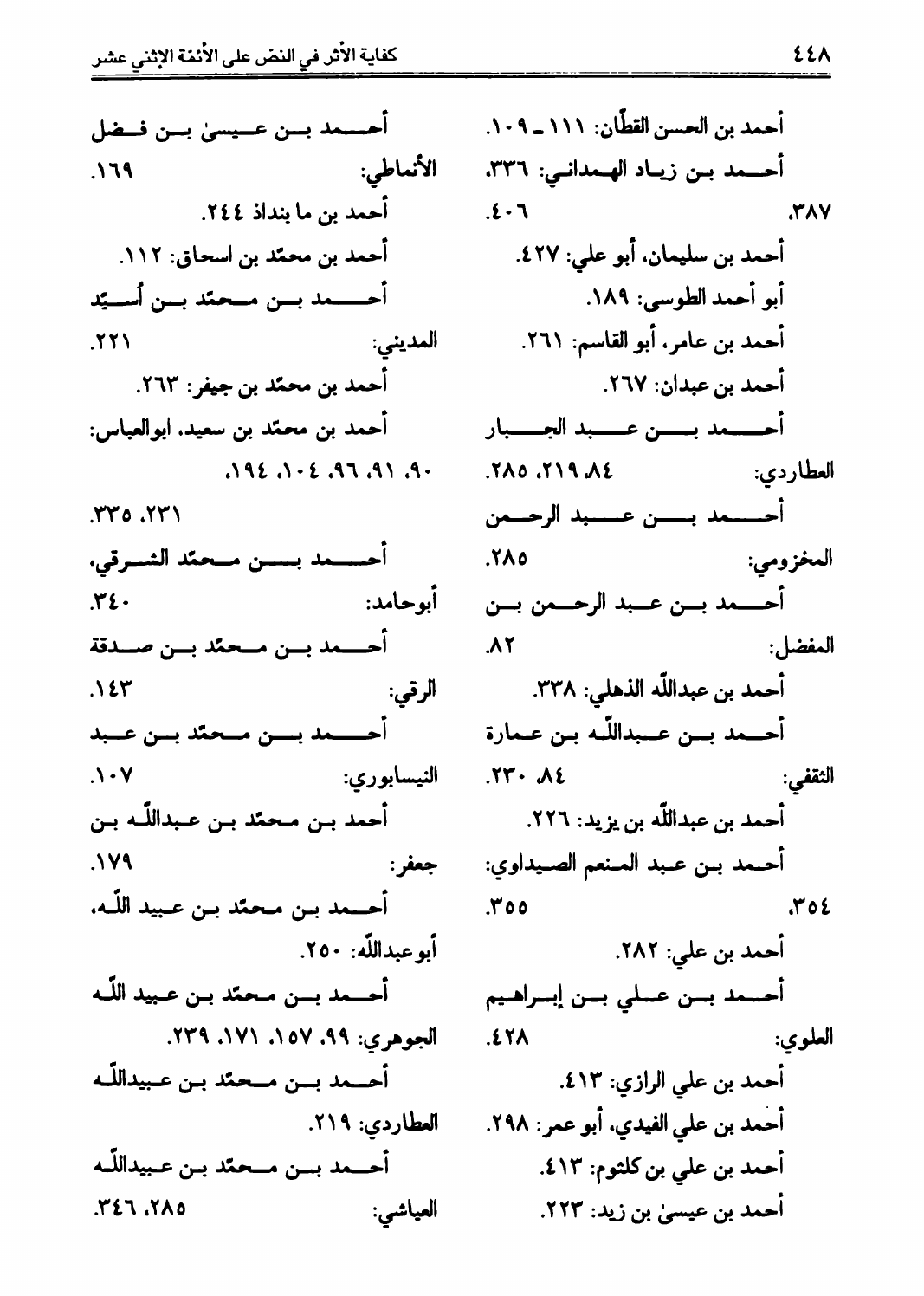 كفاية الأثر، في النصوص على الأئمة الإثني عشر