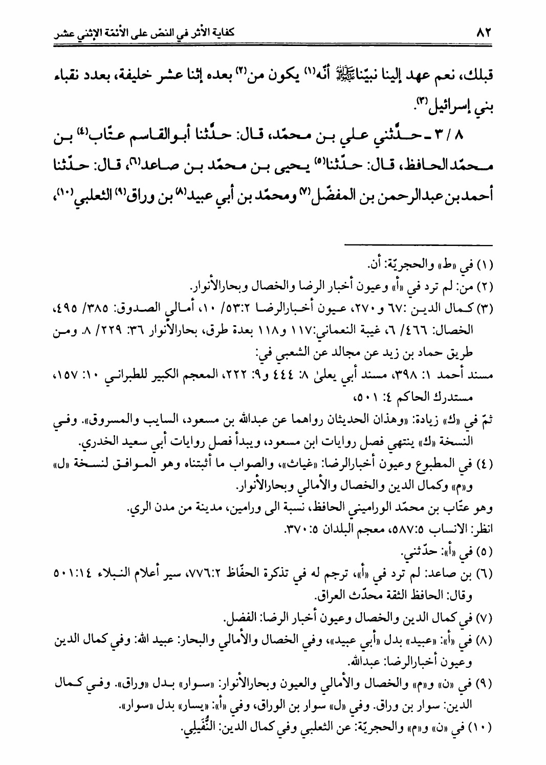 كفاية الأثر، في النصوص على الأئمة الإثني عشر
