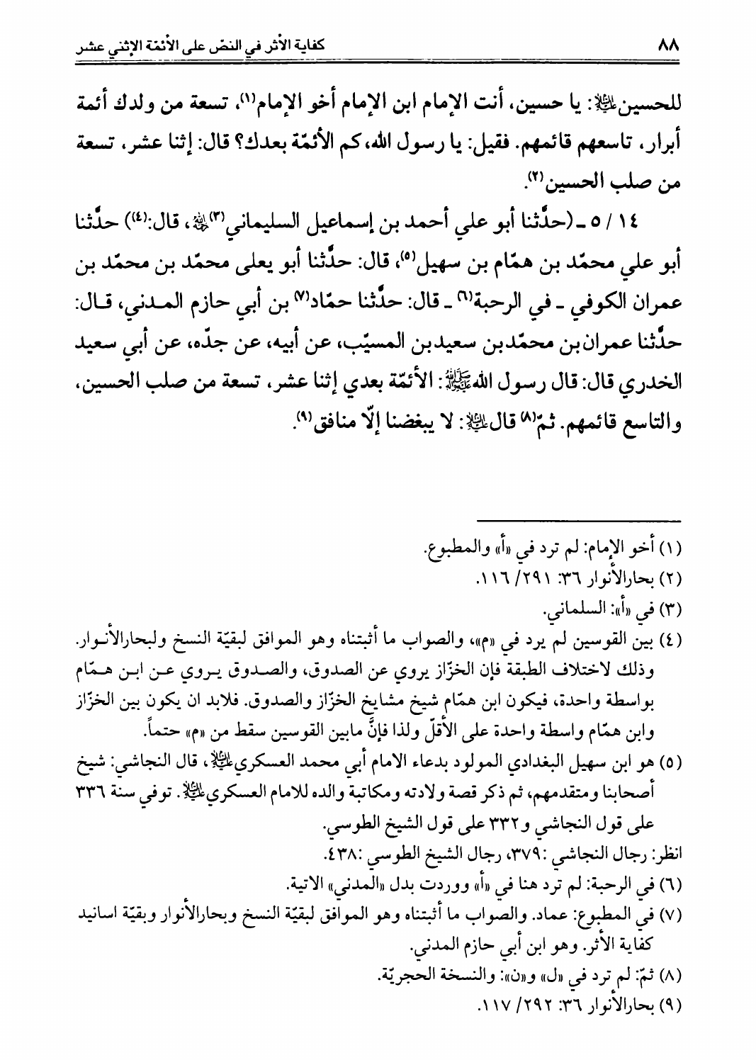 كفاية الأثر، في النصوص على الأئمة الإثني عشر