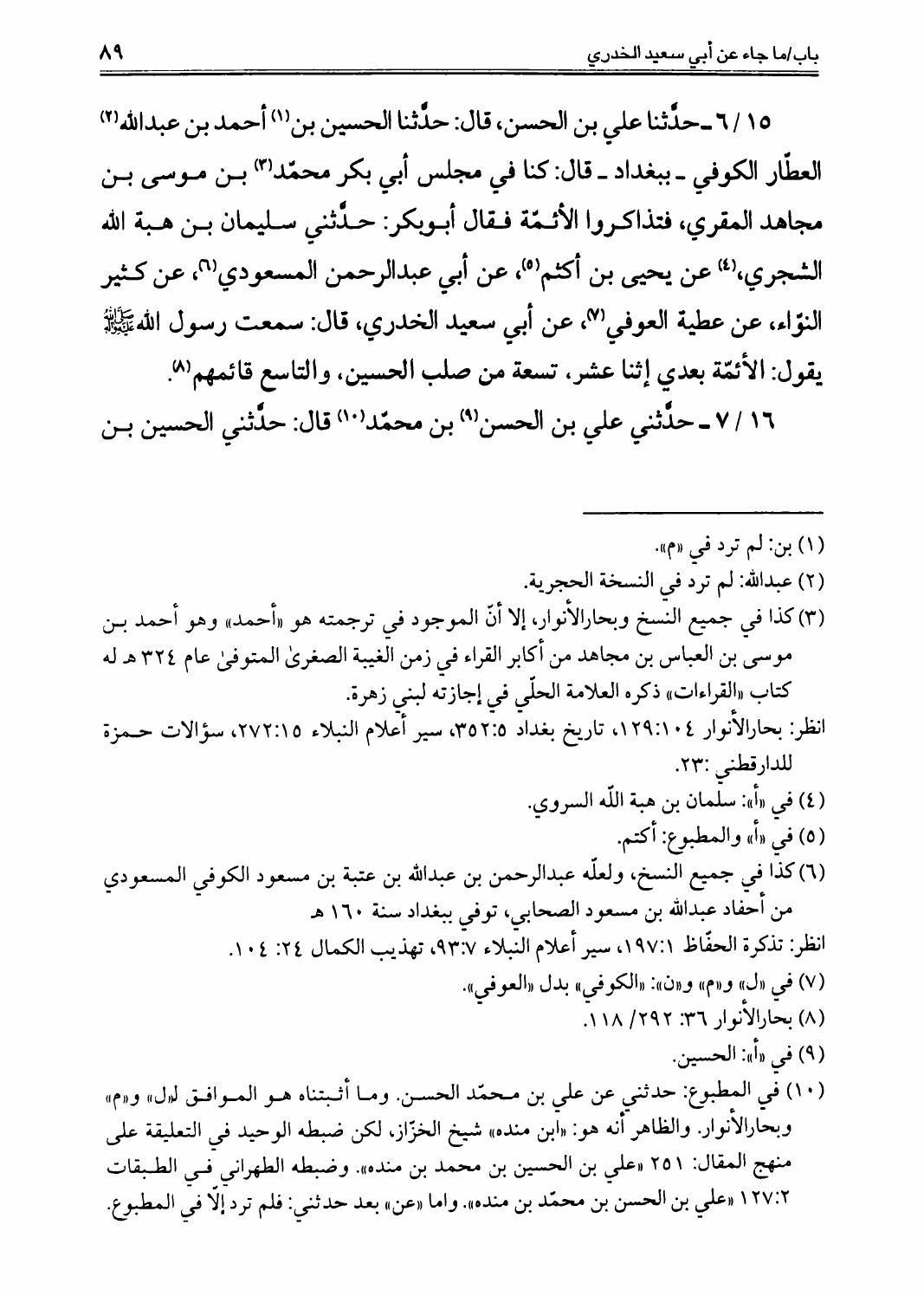 كفاية الأثر، في النصوص على الأئمة الإثني عشر