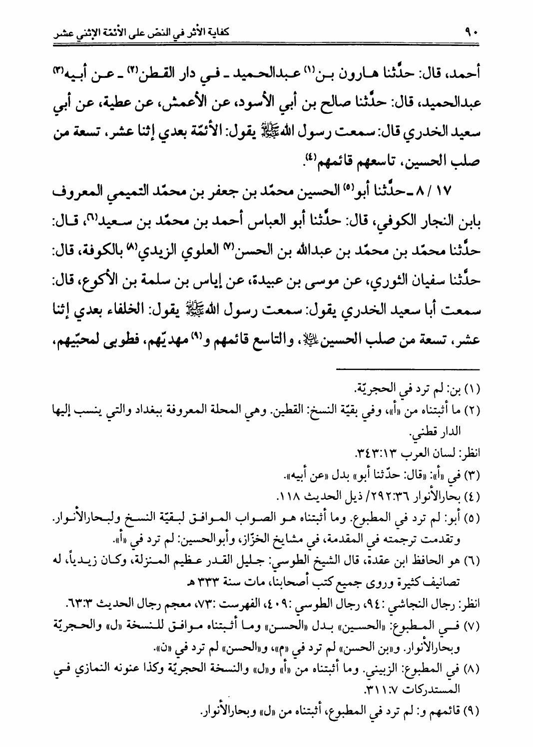 كفاية الأثر، في النصوص على الأئمة الإثني عشر