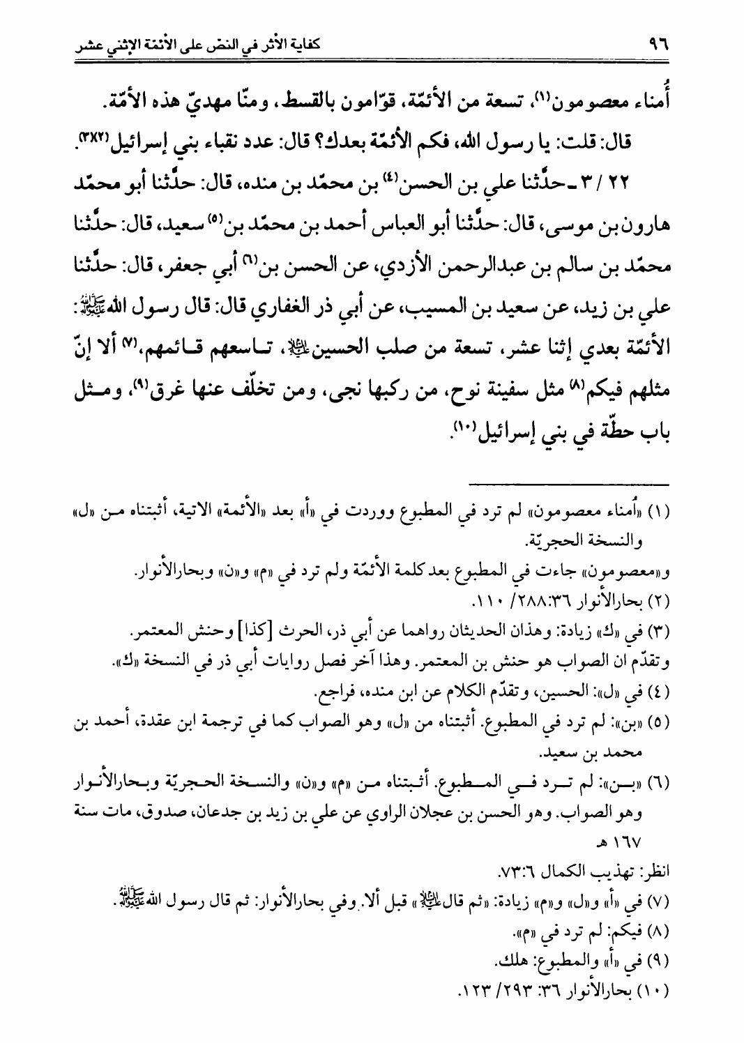 كفاية الأثر، في النصوص على الأئمة الإثني عشر