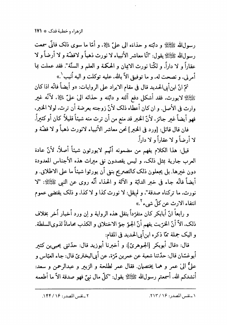 الزهراء ع وخطبة فدك، شرح الخطبة الفدكية