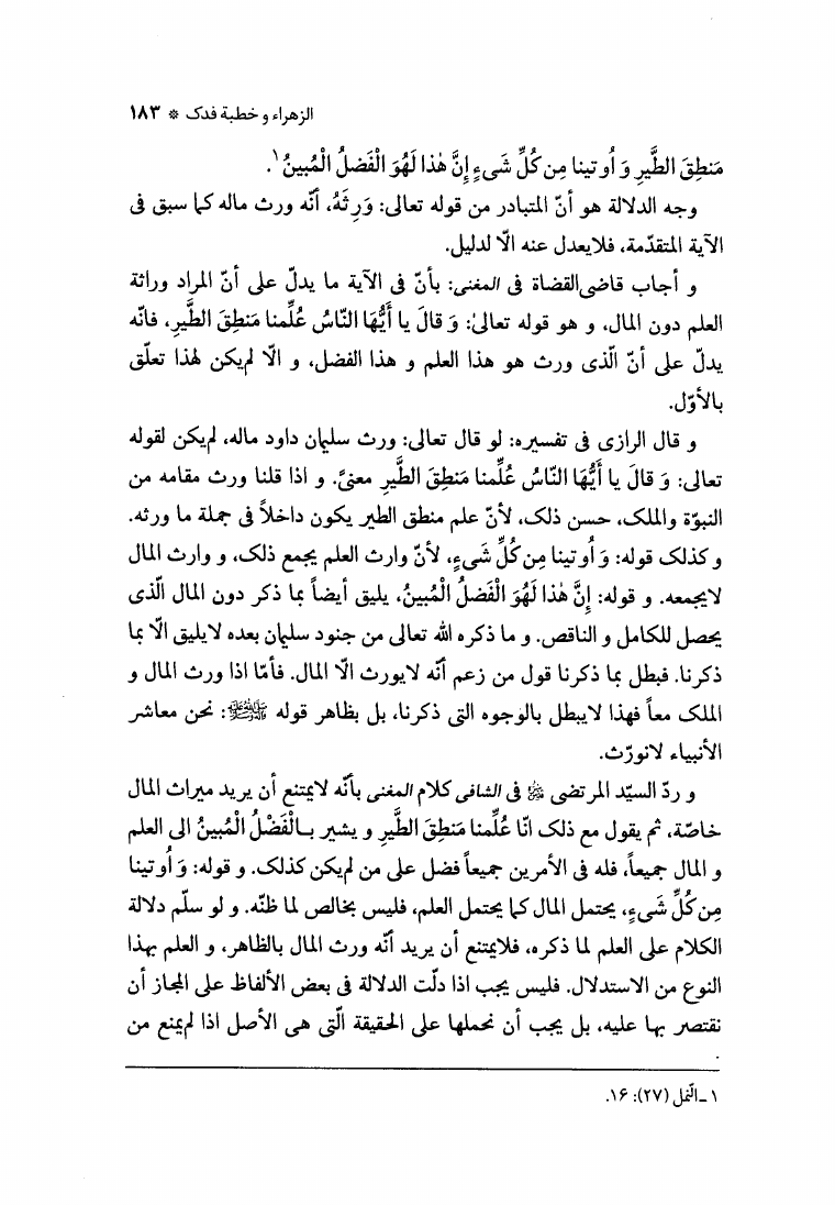 الزهراء ع وخطبة فدك، شرح الخطبة الفدكية