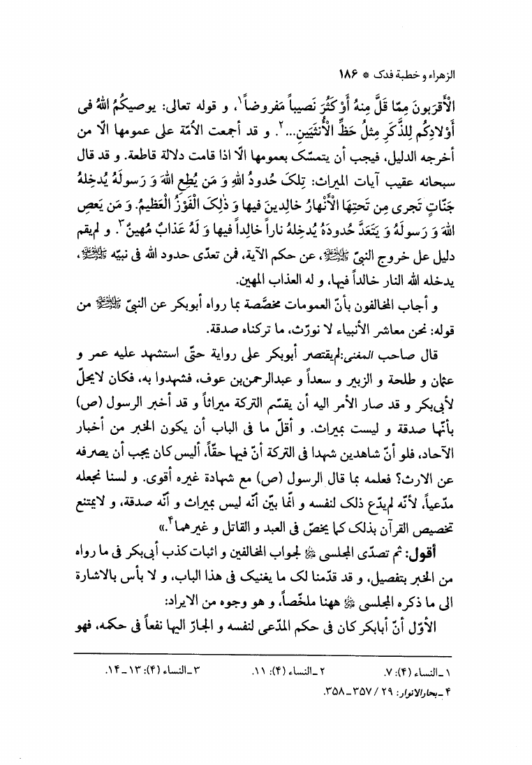 الزهراء ع وخطبة فدك، شرح الخطبة الفدكية