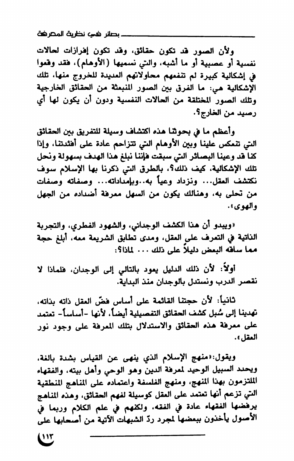 نام کتاب : بصائر في نظرية المعرفة نویسنده : الشيخ معتصم السيد أحمد    جلد : 1  صفحه : 113